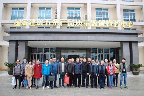 图一:各参会专家在国家建筑五金产品质量监督检验中心门前留影。
