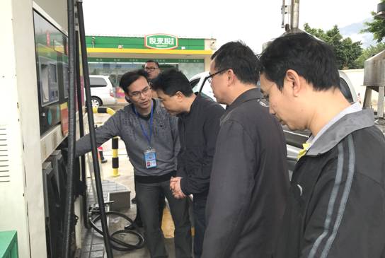 此后,翁卓辉局长一行在欧阳壮所长及相关检定员的陪同下,到附近的加油站了解加油机检测工作。翁卓辉局长认真了解了加油机检测申请的具体流程,现场观看了检定员对加油机检测的操作过程,并对一线检定员的工作予以肯定。