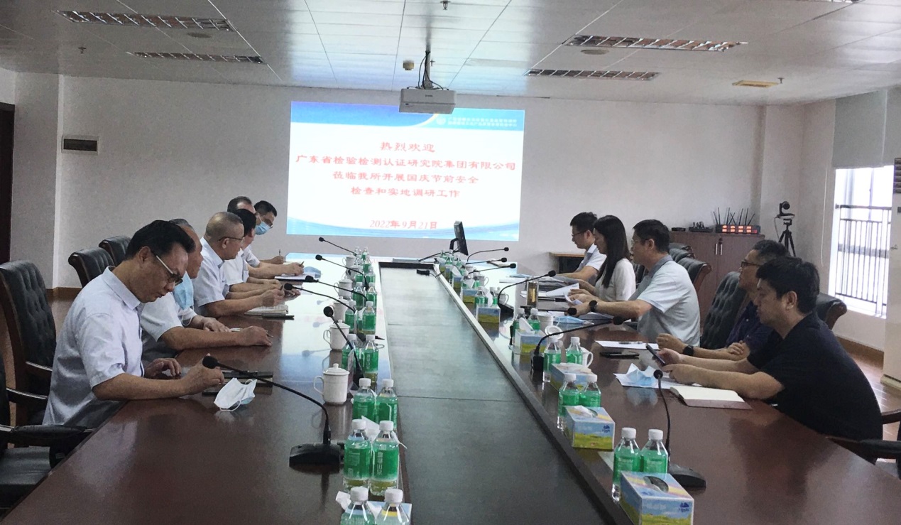 9月21日,粤检集团党委副书记、董事、总经理刘伟,集团党委委员、副总经理唐穗平一行到我所开展国庆节前实地调研和安全检查,并召开保安全稳增长座谈会。