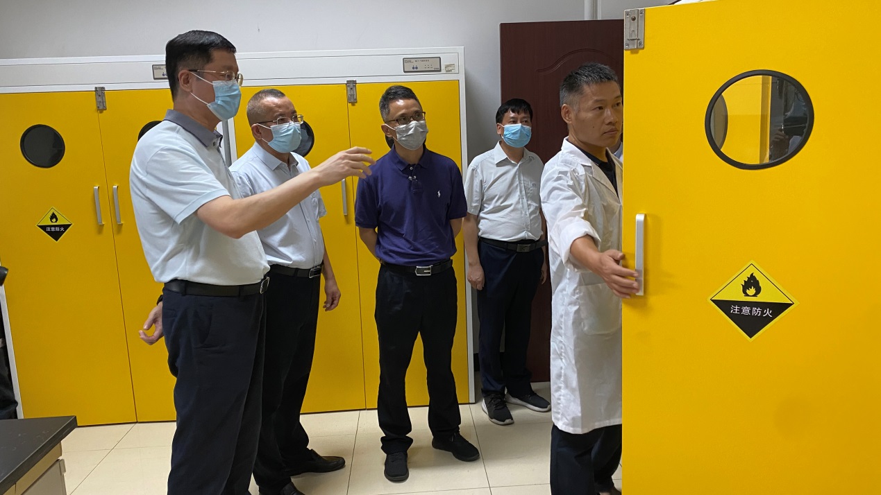 刘伟一行首先深入我所重点实验室、危险化学品和有毒有害试剂保存室、易燃易爆气体储存仓库等重点场所,仔细检查安全生产落实和实验室建设情况,并要求全面贯彻落实党中央“疫情要防住、经济要稳住、发展要安全”的重要指示精神和省、市相关政策措施,切实抓好安全生产和疫情防控各项工作。